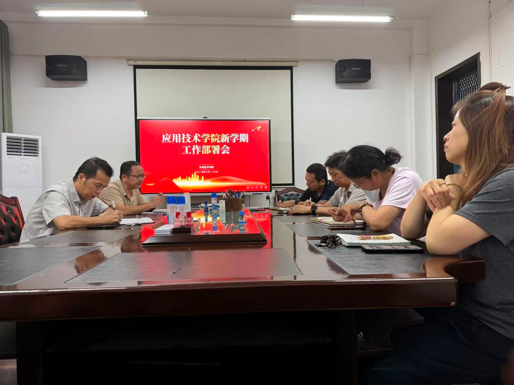 吴生传达了学校暑期处科级干部专题培训班精神,并就新学期重点工作进行强调:一是持续深化党建引领,以正确政治方向和工作导向贯穿办学全过程;二是准确把握国家政策和全面贯彻学校党委对学院的发展定位,谋深谋实“十五五”规划目标任务、改革举措;三进一步规范办学,加强校外教学点管理,不断提高人才培养质量。